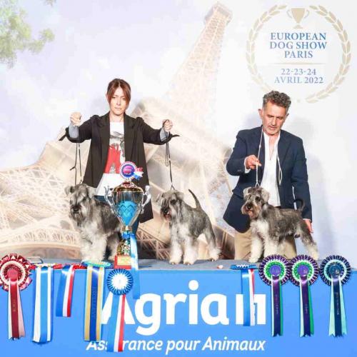 Otac od ženke: Vice Prvak Evrope 2022. Pariz internacionalni multi grand sampion višestruki klupski pobednik (Svajcarska, Rumunija, Madjarska, Srbije, Makedonije, Bosne)