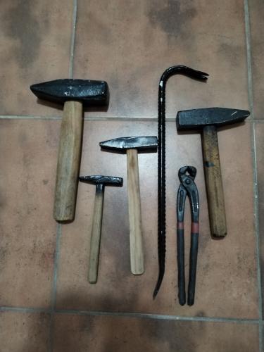 Četiri čekića, mali pajser i armiračka klešta, korišćeno, ispravno.