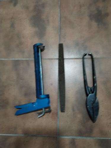 Pištolj za silikon, turpija i makaze za lim ispravno korišćeno.