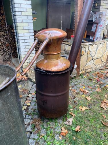 Kazan za rakiju bakarniSombor Prodajem polovni bakarni kazan za rakiju 50 L na cvrsto gorivo, posuda za kondenzat pocinkovani lim, u Somboru, cena 30000 dinara.