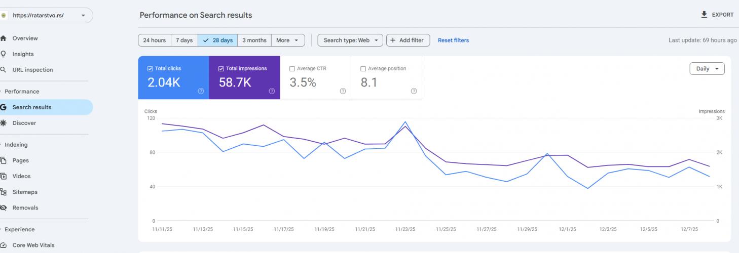 Sajt na prodaju ratarstvo.rs 2.500 poseta mesečnoNovi Sad Sajt ratarstvo. rs postoji jace od godinu dana, i ima mesecno oko 3000 poseta, sajt je stabilan trenutno i poslednjih par meseci sudeci po Google Search Console-i.