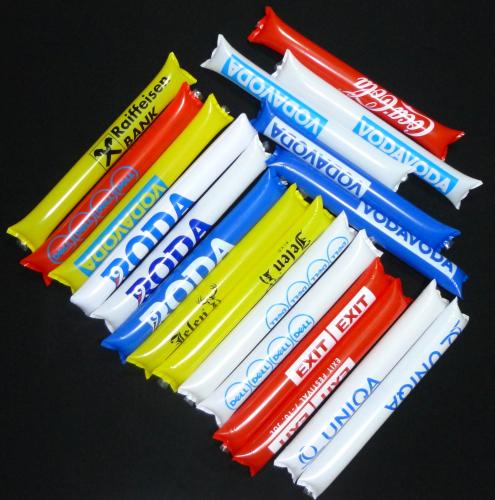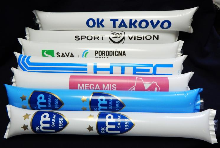Navijačke udaraljke sa štampom ili bezNovi Sad Uz osnovnu delatnost- stampu na balonima svih velicina i oblika, osvojili smo i kvalitetnu stampu NAVIJACKIH UDARALJKI-KLEPERSA-CHEERING STICK – BASTOMS STICS, loptama za plazu, jastucicima, dusecima,…Nasi otisci su izuzetno kvalitetni i veliki. Udaraljke IMAMO NA SOPSTVENOM LAGERU i stampamo ih jednostrano ili obostrano. Boje udaraljki su : bela, plava, crvena, žuta, zelena, crna i narandzasta.