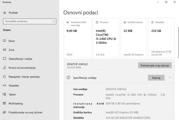 Instaliran Win 10 64 bit sa licenecom. Računar je idealan za kancelarijski rad, školu, surfovanje internetom i gledanje filmova. Zahvaljujući SSD disku, sistem se podiže za par sekundi i radi veoma tečno.