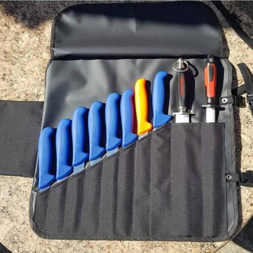 Torbica za nosenje i cuvanje mesarskog alata sa 10 pregrada i jednim dezpicem...