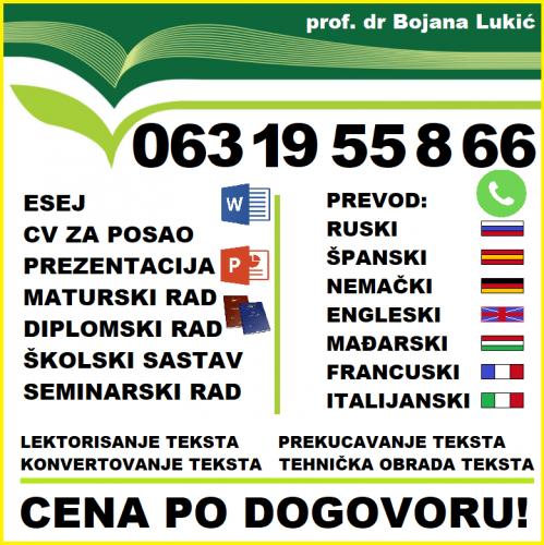 Maturski rad (2000 din), diplomski rad (4500 din), seminarski rad (1500 din),... |